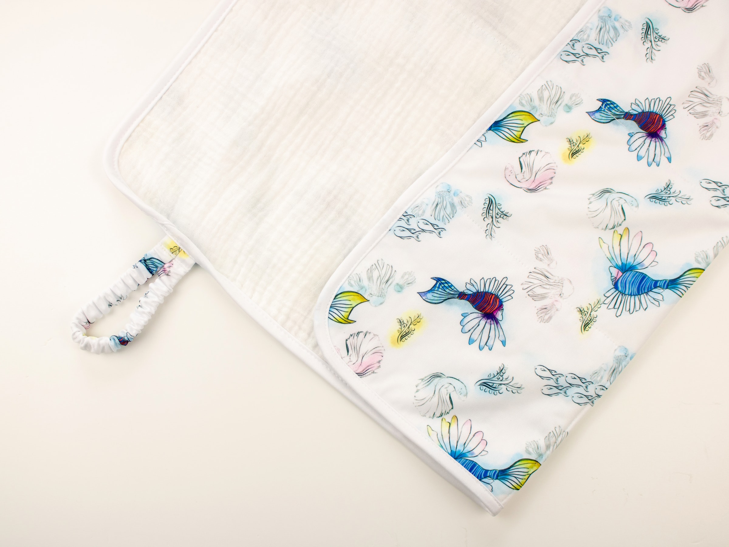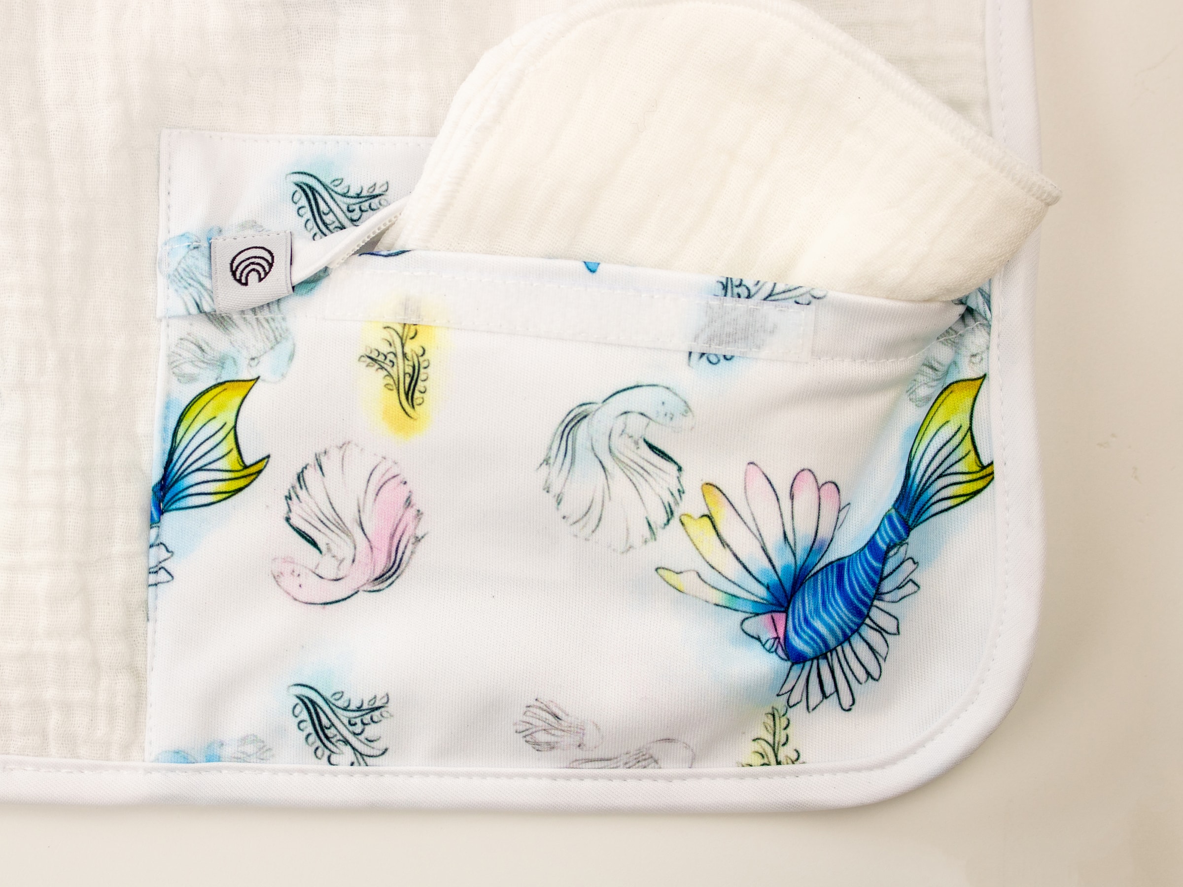 Weiches Musselin auf der Innenseite sorgt dafür, dass dein Kind beim Wickeln schön weich liegt und die wasserdichte Außenseite lässt keine Feuchtigkeit durch, wenn du deinem Kind auf einem feuchten Boden die Windel wechselst.