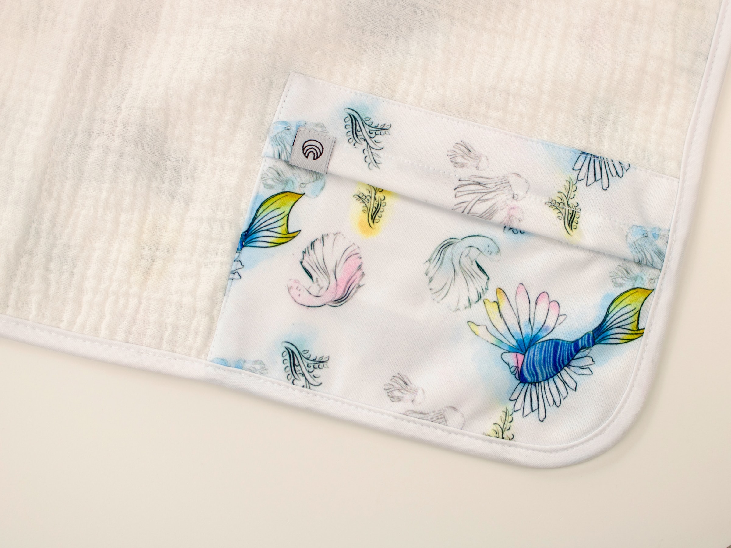Das weiche Musselin auf der Innenseite bietet deinem Baby auch unterwegs eine super weiche und angenehme Atmosphäre beim Wickeln. Dank der wasserdichten Außenseite kannst du deinem Kind auch auf feuchten Untergründen problemlos die Windeln wechseln.